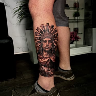 Realistic Tattoo, Black and Gray.